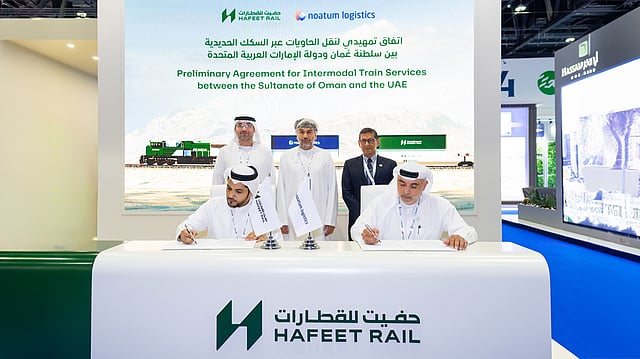 Under the preliminary agreement, signed during the Global Rail 2025 exhibition in Abu Dhabi, Noatum Logistics will operate a daily rail freight service, utilising Hafeet Rail’s upcoming network that connects Sohar in Oman to Abu Dhabi in the UAE.